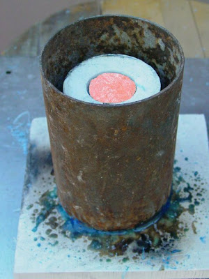 Place a soldering pad on the cover flask. The wax shavings will attempt to burn and will absorb all the oxygen around the mold flask and the metal it contains. A reducing atmosphere will be created around the mold flask. There will be no oxygen remaining in the cover flask to combine with the copper in the sterling silver to form firescale.